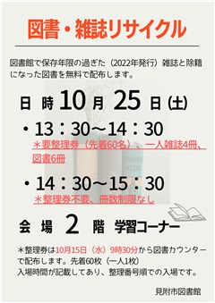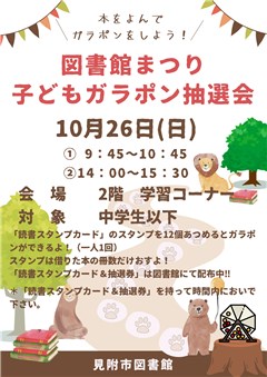 10月25日(土)・26日(日)の2日間、『図書館まつり』を開催します。